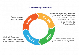 La metodología de esta certificación se basa en implantar un sistema de mejora continua basado en el ciclo PDCA o ciclo PHVA (Planificar-Hacer-Controlar o Verificar y Actuar);